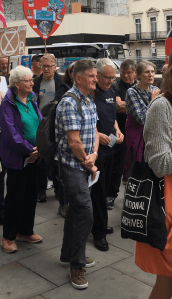 We arrived a little late but tubed down to Trafalgar Square and were there in time to join the Walk of Witness as it set off to Parliament Square, down Whitehall and past Downing Street. Plenty of banners and chanting, especially from the younger members, all enthusiastic.